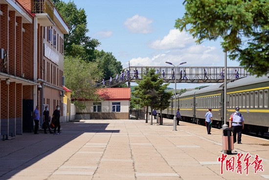 6月6日,大楊樹考生在火車站外集合,準(zhǔn)備乘“高考專列”前往阿里河。
