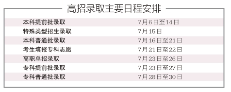 明天至7月1日,統(tǒng)考考生填報本科志愿,單考考生填報單招志愿。7月21日至22日,專科志愿填報。錄取工作于7月6日至30日進行。