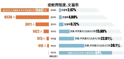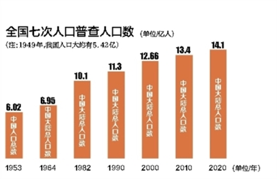 從新中國成立初期的5.42億人口,到2020年第七次全國人口普查公布的14.1億人口,目前我國人口約占全球總人口的18%,是世界第一人口大國;從新中國成立初期我國人均預期壽命不足35歲到2019年國家統(tǒng)計局公布的我國人均預期壽命為77.3歲,70年的時間提高了42.3歲;從新中國成立之初全國高達80%的文盲率到2020年文盲率降低為2.67%,我國人口素質不斷提高……