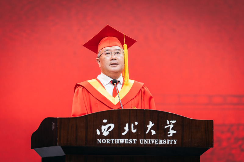 西北大學校長郭立宏在畢業(yè)典禮上發(fā)表講話(學校供圖)
