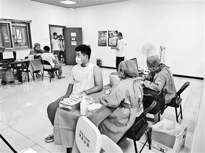 7月20日,北京市全面啟動12至17歲人群新冠疫苗接種。昨天,北京青年報記者來到門頭溝區(qū)的接種點,來自首都師范大學(xué)附屬中學(xué)永定分校的中學(xué)生正在有序進行疫苗接種。