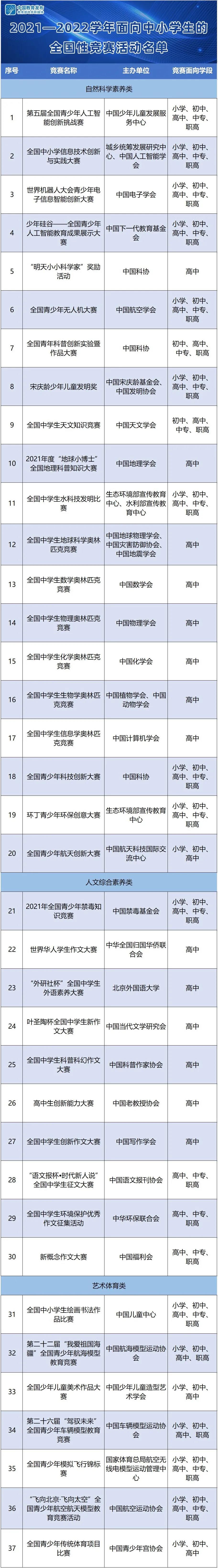 教育部公示37項(xiàng)面向中小學(xué)生的全國(guó)性競(jìng)賽活動(dòng)