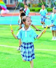 湖南長(zhǎng)沙市天心區(qū)仰天湖桂花坪小學(xué)二年級(jí)的學(xué)生在體育課上跳繩。新華社發(fā)