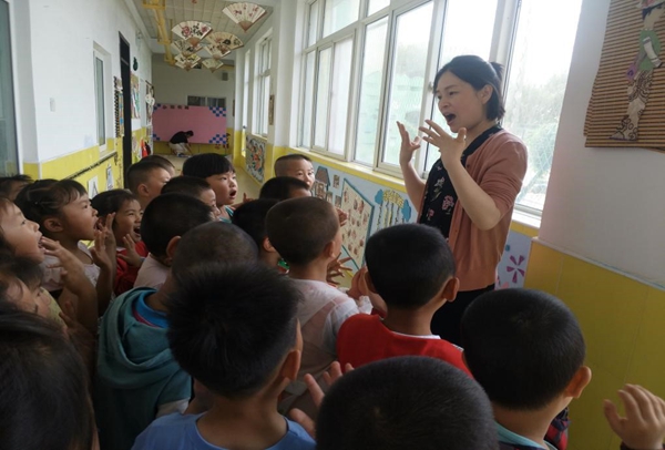 圖為河南省新鄉(xiāng)市輝縣市西平羅鄉(xiāng)中心幼兒園園長(zhǎng)、教師郭文艷。圖片來(lái)源:教育部
