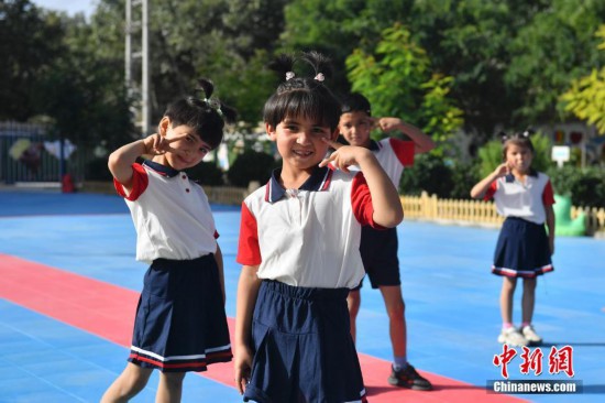 9月27日,新疆和田縣布扎克鄉(xiāng)庫(kù)木村幼兒園,小朋友在嬉戲玩耍。當(dāng)日,據(jù)該幼兒園園長(zhǎng)維吾爾族姑娘阿爾孜古麗·阿力木介紹,該園由北京市援建,可容納300名學(xué)生,目前有14名教師。 中新社記者 李雪峰/文 中新社記者 田雨昊/攝