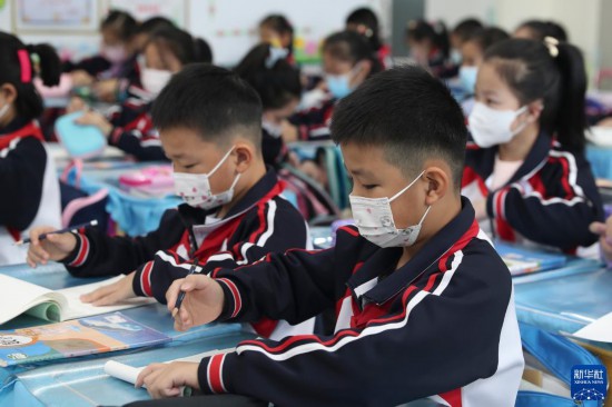 10月8日,哈爾濱市群力兆麟小學(xué)的學(xué)生在課堂上學(xué)習(xí)。