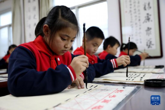 10月8日,河北省邢臺市任澤區(qū)達(dá)二小學(xué)學(xué)生在練習(xí)書法。新華社記者 駱學(xué)峰 攝