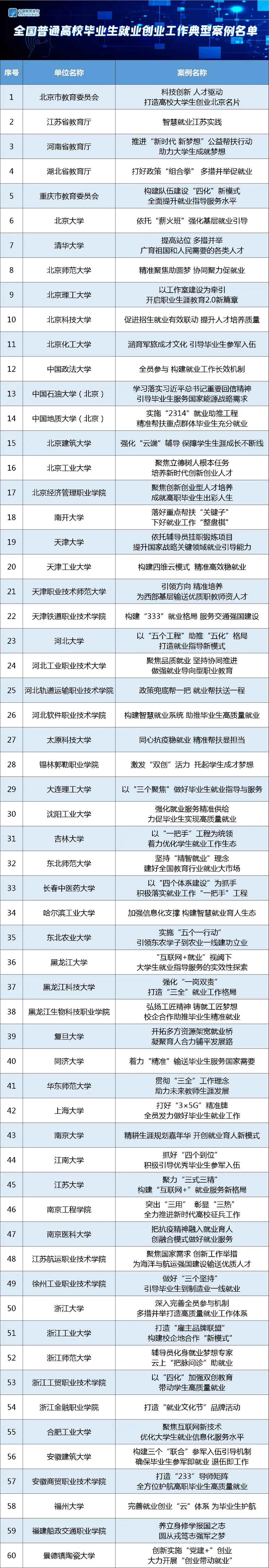 全國普通高校畢業(yè)生就業(yè)創(chuàng)業(yè)工作典型案例名單