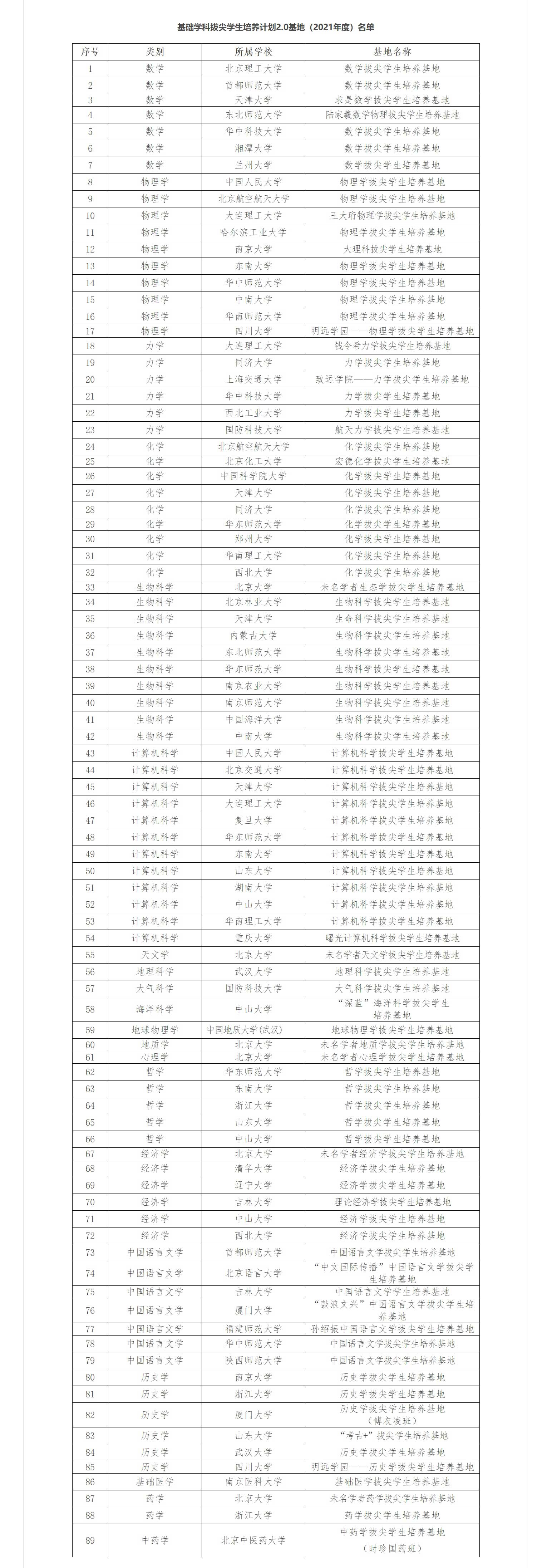 教育部公布第三批基礎(chǔ)學(xué)科拔尖學(xué)生培養(yǎng)計(jì)劃2.0基地名單