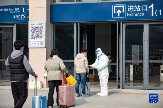 1月17日,旅客在西安火車站有序進站。新華社發(fā)(劉翔攝)