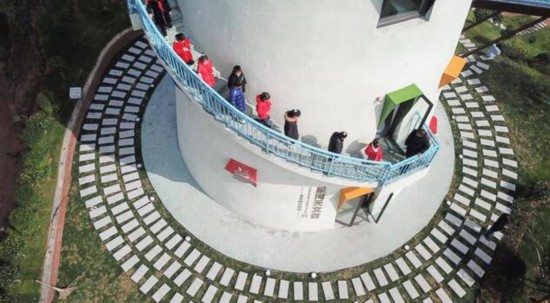 1月19日,學(xué)生在湖南省瀏陽(yáng)市小河鄉(xiāng)的星河天文臺(tái)參觀(無(wú)人機(jī)照片)。新華社記者 陳澤國(guó) 攝