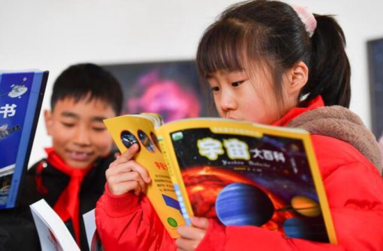 1月19日,在湖南省瀏陽(yáng)市小河鄉(xiāng)的星河天文臺(tái),學(xué)生閱讀天文科普?qǐng)D書。新華社記者 陳澤國(guó) 攝