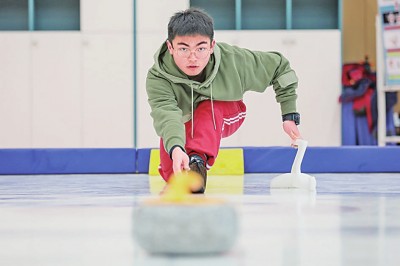 貴陽實驗三中學生在冰雪選修課上進行冰壺訓練。瞿宏倫攝/光明圖片