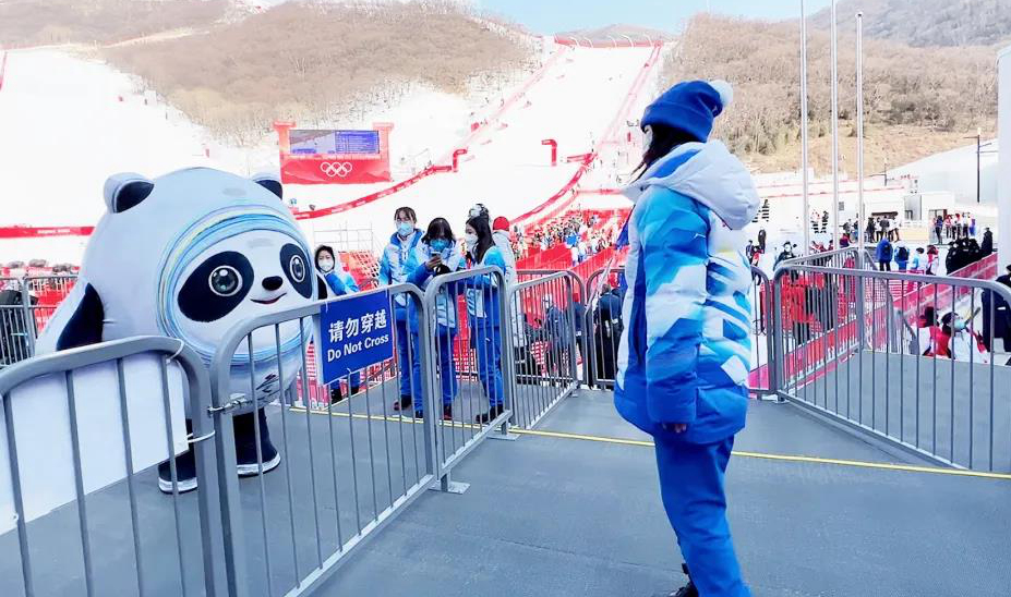志愿者和冰墩墩“斗舞” :以飽滿的熱情服務冬奧