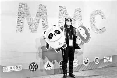 徐雅純在北京冬奧會主媒體中心與吉祥物合影
