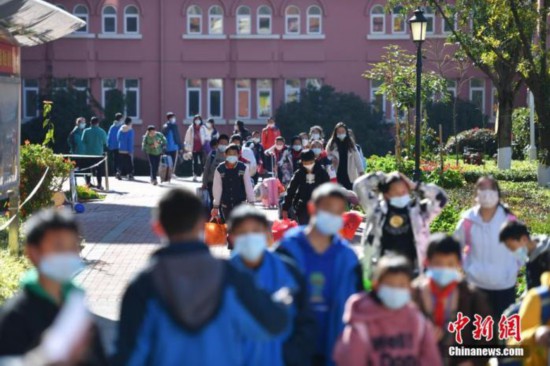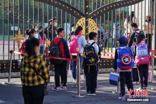 圖為某學(xué)校,孩子準備回家。 中新社記者 劉冉陽 攝