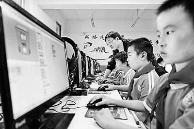 河北省灤州市第四實驗小學(xué)老師在下午放學(xué)后指導(dǎo)學(xué)生練習(xí)計算機編程。新華社發(fā)