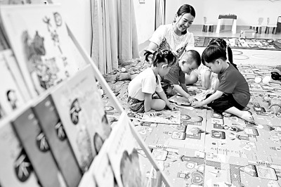 福建省晉江市第十實驗小學(xué)教師子女托管室,老師為幼兒園放學(xué)后的孩子們講繪本。新華社發(fā)