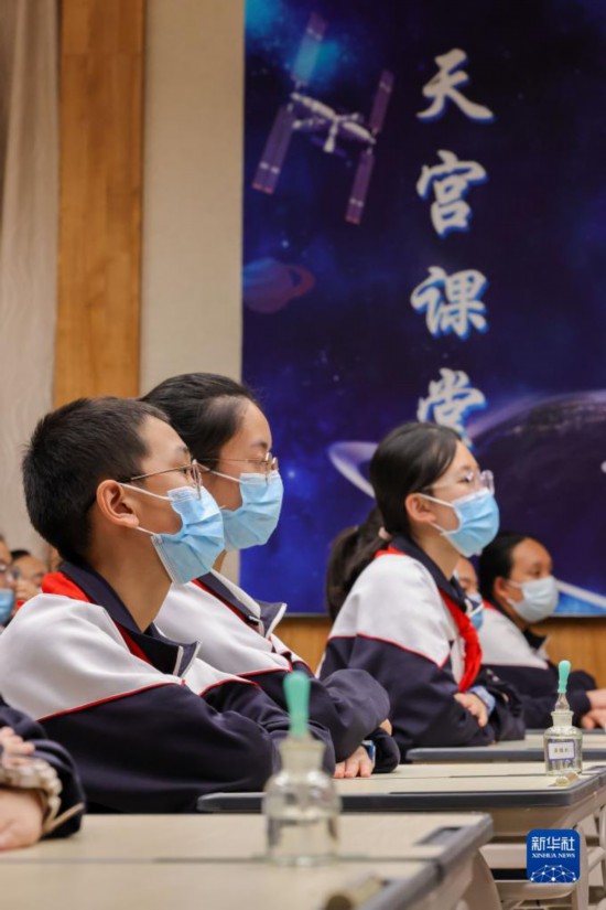 3月23日,在新疆烏魯木齊市第七十中學(xué),學(xué)生收看“天宮課堂”第二課。