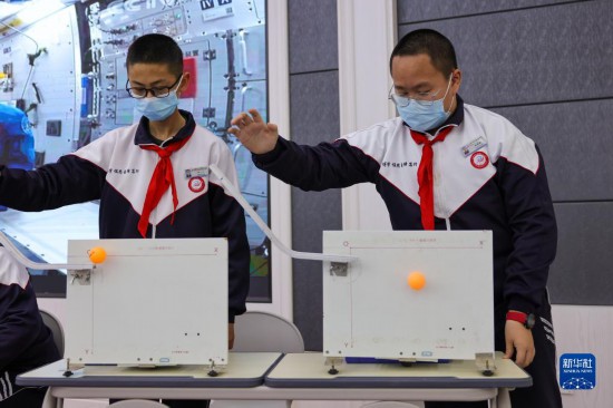 3月23日,在新疆烏魯木齊市第七十中學(xué),學(xué)生收看“天宮課堂”第二課的同時(shí)進(jìn)行拋物實(shí)驗(yàn)。