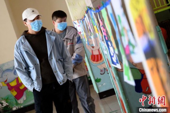參觀者觀看自閉癥孩子的畫(huà)作。 韋亮 攝