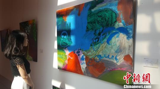 圖為市民觀看自閉癥兒童畫(huà)展。 陳植煒 攝