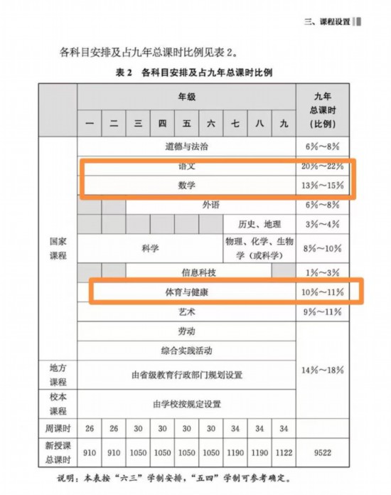 《義務(wù)教育課程方案和課程標(biāo)準(zhǔn)(2022年版)》顯示,從今年9月起,全國九年義務(wù)教育學(xué)校各年級均要開設(shè)“體育與健康”課,其占總課時比例10%-11%,僅次于語文(20%-22%)、數(shù)學(xué)(13%-15%)。