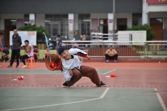 2021年11月4日,在廣西崇左大新縣民族高級中學(xué),一名學(xué)生用背簍接繡球,通過傳統(tǒng)民族體育運(yùn)動強(qiáng)身健體。新華社記者劉嶺逸攝