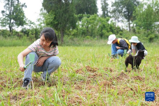 5月15日,在合肥市蜀山區(qū)南崗鎮(zhèn)“依依田園”,孩子們?yōu)榛ㄉ锍荨?/p>