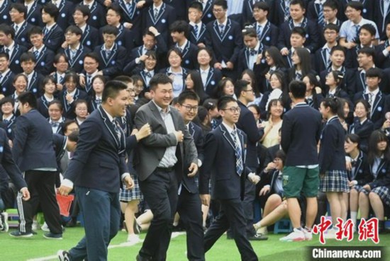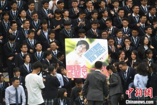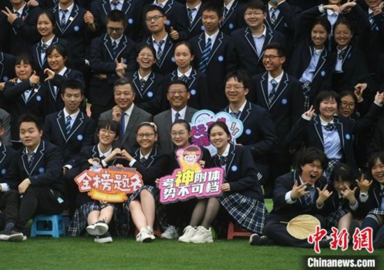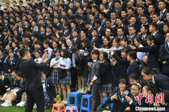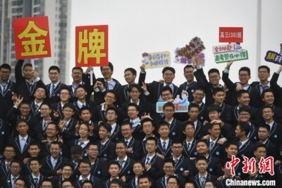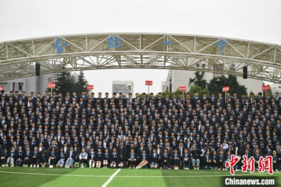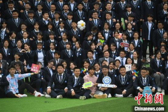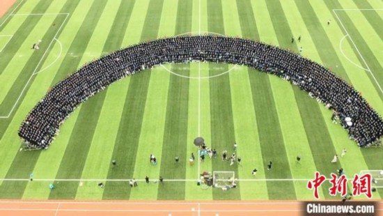 高三畢業(yè)生共同拍攝“超級(jí)畢業(yè)照”。