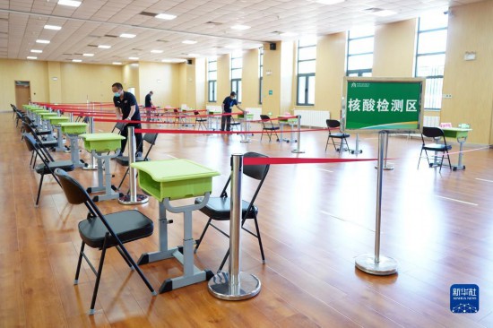 6月5日在中國農(nóng)業(yè)大學(xué)附屬中學(xué)考點拍攝的核酸檢測區(qū)。