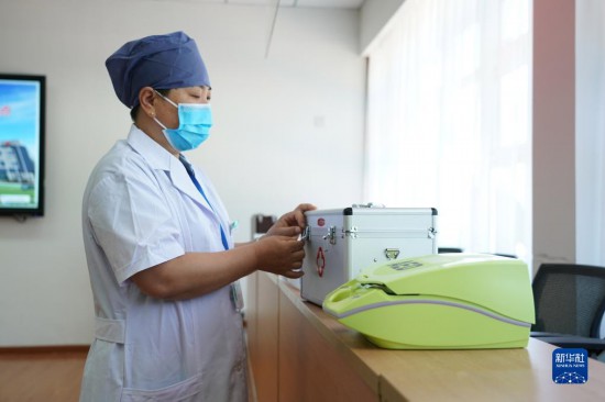 6月5日,在中國(guó)農(nóng)業(yè)大學(xué)附屬中學(xué)考點(diǎn),校醫(yī)在醫(yī)務(wù)室準(zhǔn)備醫(yī)療用品。