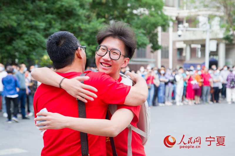 考生與老師擁抱。 人民網(wǎng) 張海峰攝