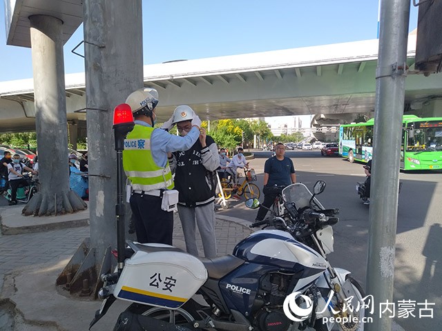 考生戴好頭盔趕赴考場。呼和浩特市交管支隊(duì)供圖
