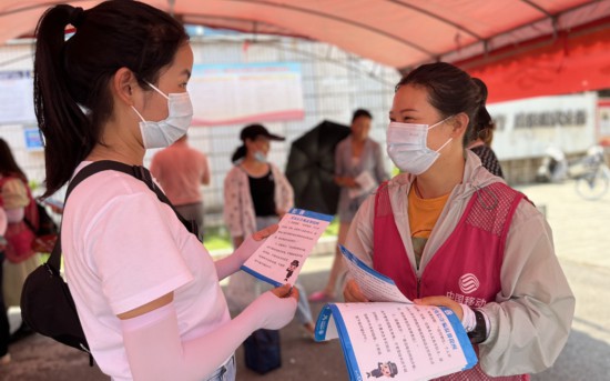 湖北移動(dòng)志愿者在考點(diǎn)周邊“服務(wù)驛站”開(kāi)展愛(ài)心助考行動(dòng)。