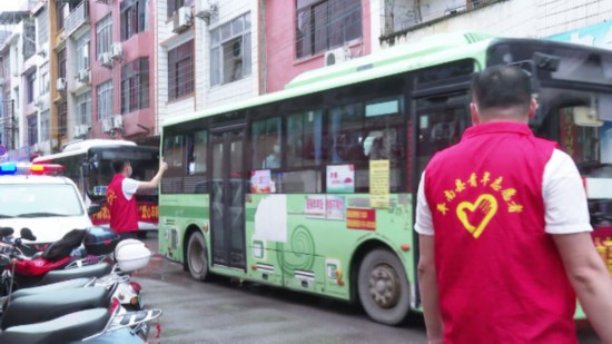 貴港市平南縣青年志愿者為考生服務(wù)。平南縣融媒體中心供圖