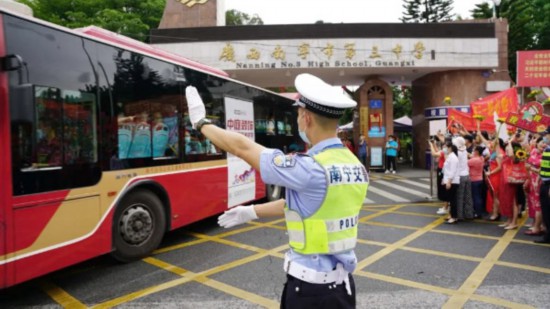 此外,廣西繼續(xù)堅(jiān)持以考生為本的原則,細(xì)致做好服務(wù)考生各項(xiàng)工作,共為114名殘疾考生提供了合理便利服務(wù)。高考首日,南寧交警全員上崗,共出動(dòng)警力1700余人次、警車265輛次,組織25支應(yīng)急小分隊(duì),規(guī)劃設(shè)置65條護(hù)考線路,為考生提供應(yīng)急救助服務(wù)24次。防城港市開展“愛心送考”行動(dòng),并為考生免費(fèi)提供雨具和餐食。柳州市派出公安交警、治安、巡邏、特警、反恐等支隊(duì)公安干警參與高考安保工作,確保考生和考點(diǎn)安全。