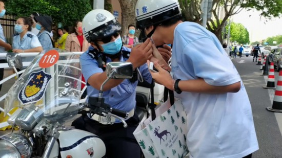 人民網(wǎng)濟(jì)南6月8日電 “別慌,來得及!”6月7日上午,山東聊城臨清市,一名考生走錯(cuò)考點(diǎn),眼看考試馬上就要開始了,臨清交警鐵騎高考服務(wù)隊(duì)的騎警立即出動(dòng),幫考生戴上頭盔,帶著他一路趕往臨清一中考點(diǎn),用時(shí)不到5分鐘,便將考生安全送入考場(chǎng)。