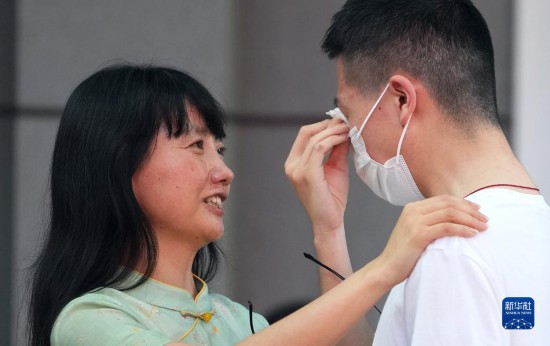 6月8日,在陜西省西安市西電中學(xué)考點外,家長為結(jié)束高考的考生安撫情緒。