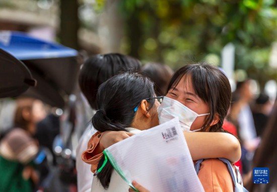 6月8日,在貴州省黔西一中考點(diǎn),考生與老師深情相擁。
