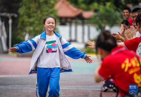 6月8日,考生跑出貴陽市烏當(dāng)中學(xué)考點(diǎn)。