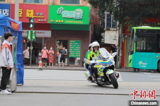 2022年高考,廣西柳州市公安局交警鐵騎護(hù)送考生車隊到考場。受訪者提供