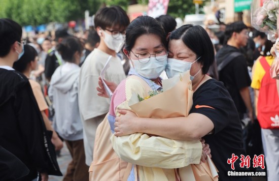 6月9日,江蘇省南通市2022年普通高校招生全國統(tǒng)一考試南通大學附屬中學考點外,家長將鮮花送給考生。 中新社發(fā) 徐培欽 攝 圖片來源:CNSphoto