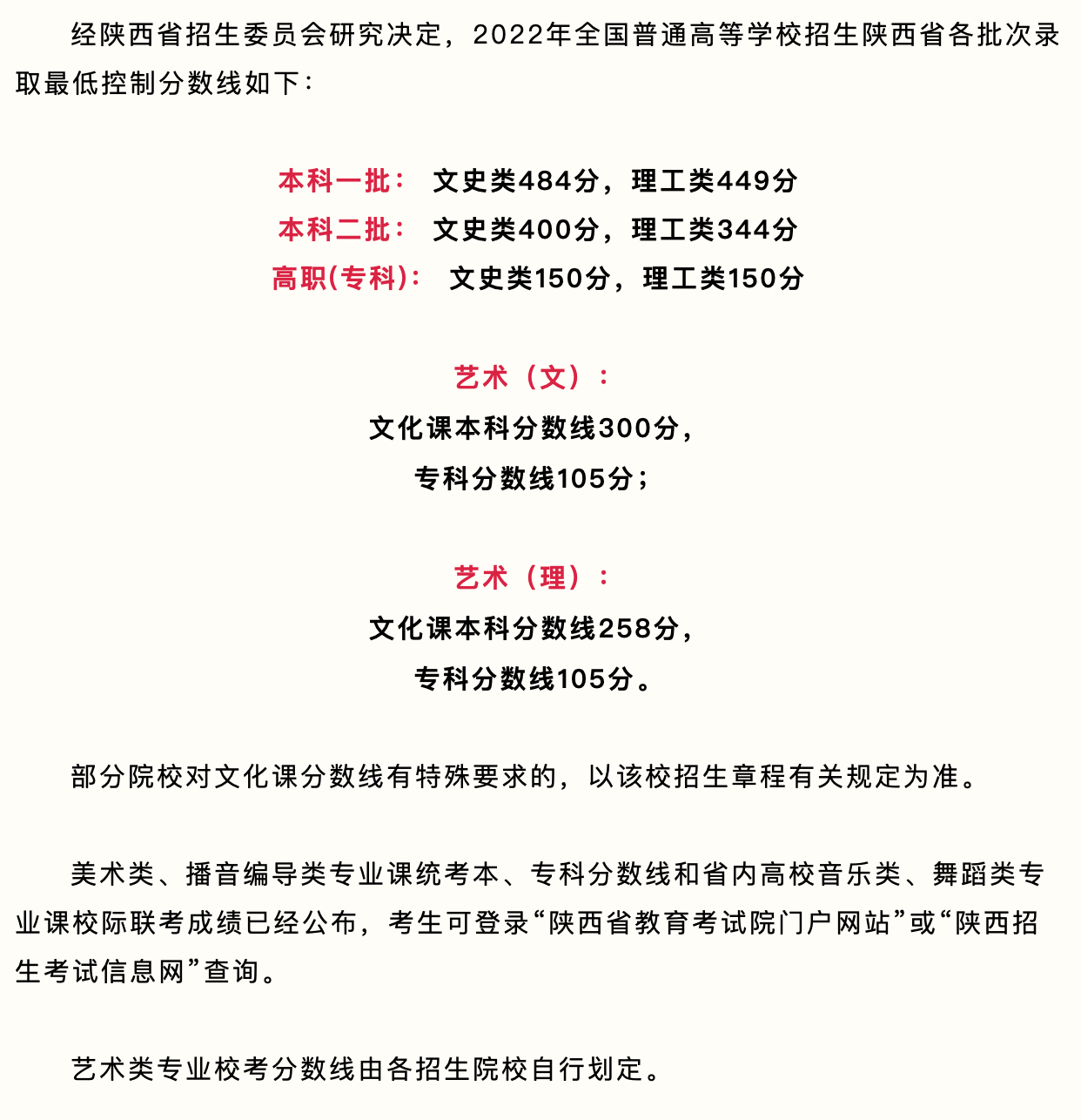 2022年陜西省普通高考本科各批次錄取最低控制分數(shù)線