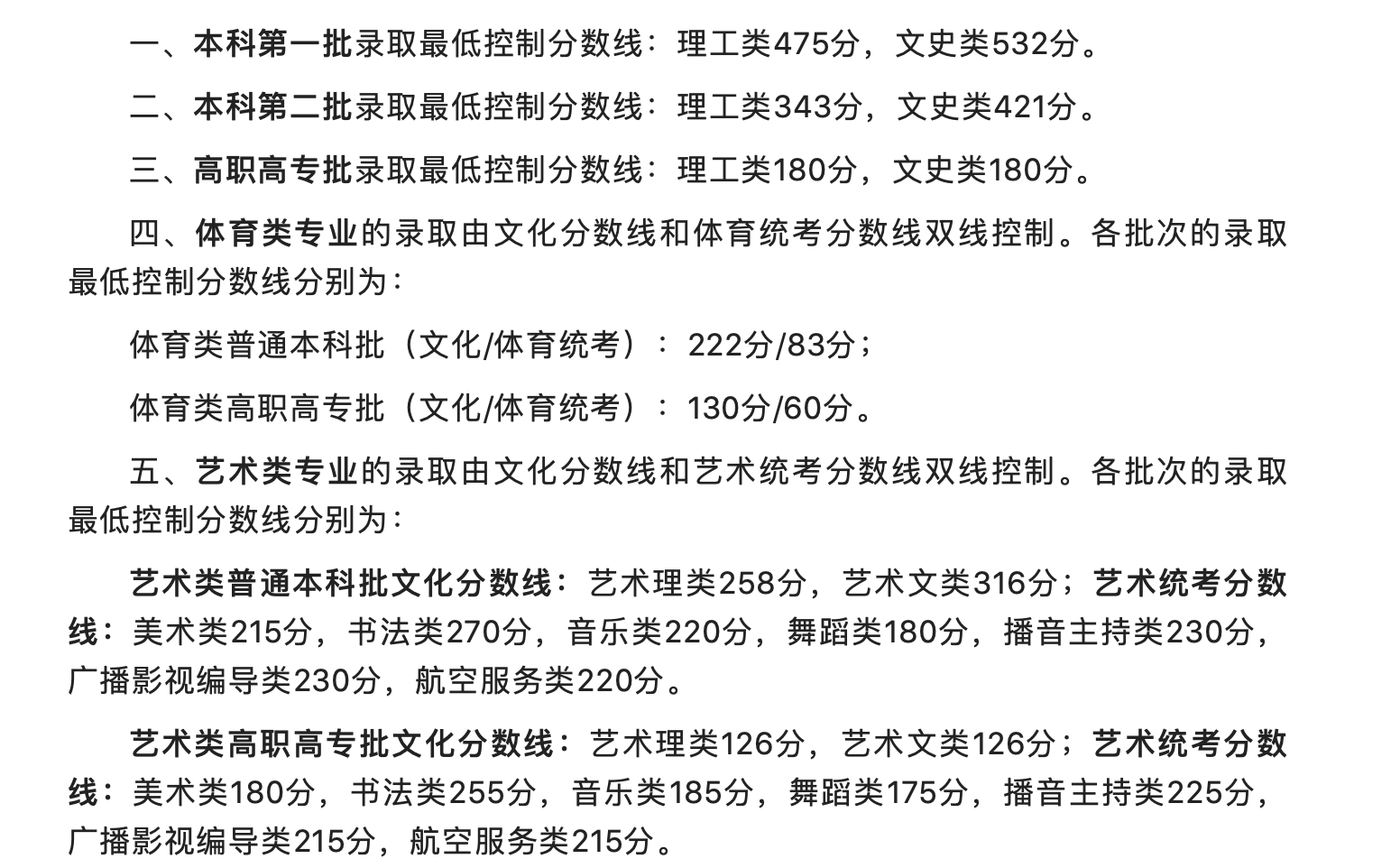 2022年廣西普通高考本科各批次錄取最低控制分?jǐn)?shù)線