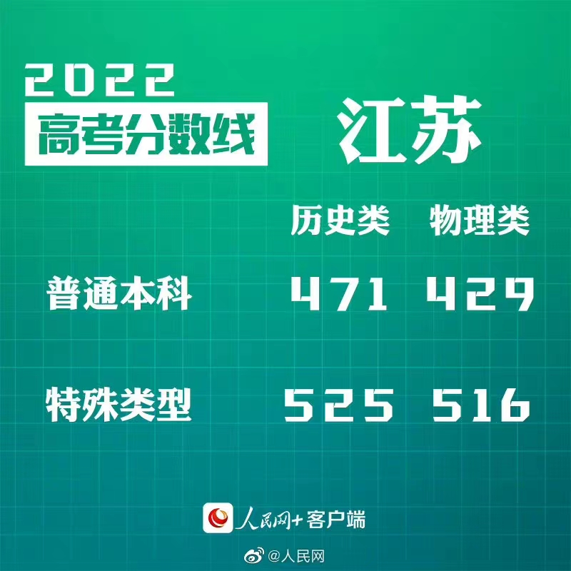 人民網(wǎng)北京6月24日電 (記者李依環(huán))據(jù)江蘇省教育考試院消息,2022年江蘇省普通高考本科各批次錄取最低控制分?jǐn)?shù)線劃定,其中普通類本科歷史等科目類471分,物理等科目類429分。