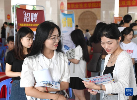 7月2日,廣西國際商務(wù)職業(yè)技術(shù)學(xué)院學(xué)生在校園雙選會(huì)上求職。
