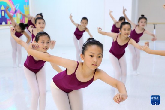 7月12日,山東省東營市東營區(qū)文匯街道一舞蹈培訓(xùn)學(xué)校教室里,學(xué)生在練習(xí)舞蹈動作。