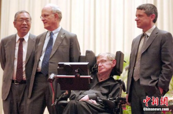 2006年,世界著名科學(xué)家丘成桐(左至右)、大衛(wèi)·格羅斯(David Gross)、斯蒂芬·霍金(Stephen Hawking)、安地·斯特羅明格(Andrew strominger)出席國(guó)際弦理論大會(huì)。中新社記者 徐曦弋 攝