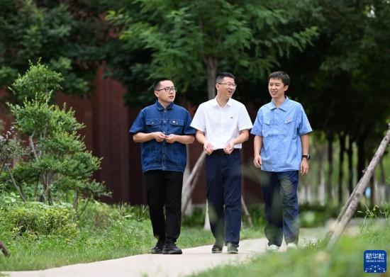 王興東(中)、許超(右)和劉世雄在校園內(nèi)交談(8月8日攝)。新華社記者 趙子碩 攝